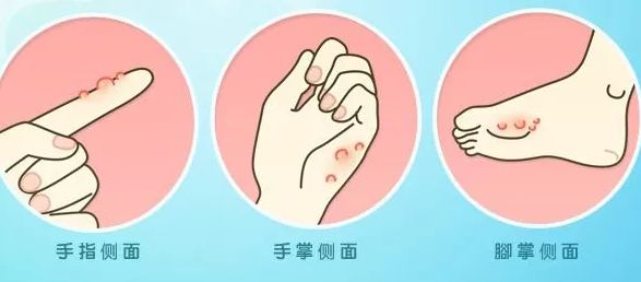 主要表现为米粒大小水疱,半球形,略高出皮面,几个或成群出现,周围发红不明显。单个水疱数周可消退,但不断有新的水疱形成,水疱干涸后脱皮。