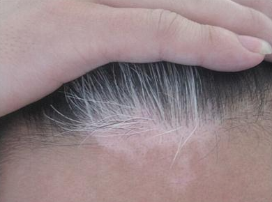 毛发变白则意味着,皮肤黑色素细胞已经严重脱失,皮肤毛发没有足够的黑色素供应。尤其是头部白癜风,如果不及时得到医治发展到晚期就会累及头发,有可能就会变白。即使通过治疗局部白斑逐渐好转复色,白毛仍有可能